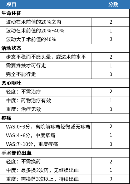1.按麻醉后离院评分标准判定患者能否离院,总分为10分,≥9分者方可离院。