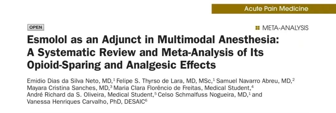 艾司洛尔是一种超短效的β1选择性肾上腺素能拮抗剂,其在多模式麻醉中潜在的减少阿片类药物用量的效果已被当下的一些研究关注。此前的系统综述因纳入了不同对照组的试验,给研究结果的推广带来了严重局限性。基于现况,学者们进行了系统综述和META分析,专门整合了安慰剂对照的随机试验,旨在评估术中艾司洛尔输注对术后24 h内阿片类药物用量和疼痛评分的影响。研究报告于ANESTHESIA & ANALGESIA上发表。