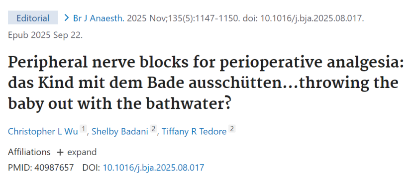 外周神经阻滞(PNB)已被多部骨科与麻醉指南列为围术期多模式镇痛的核心措施,可显著降低术后即刻疼痛评分、减少术中阿片用量并缩短麻醉恢复室(PACU)停留时间。然而,PNB作用消退后可能出现的“反跳痛”正日益受到关注。今日读到一篇文献,对PNB的长期影响进行了回顾性评估,结果发现PNB的使用反而增加了阿片类药物用量,这与多模式镇痛的最初目的背道而驰,那么PNB是否还有必要进行呢?