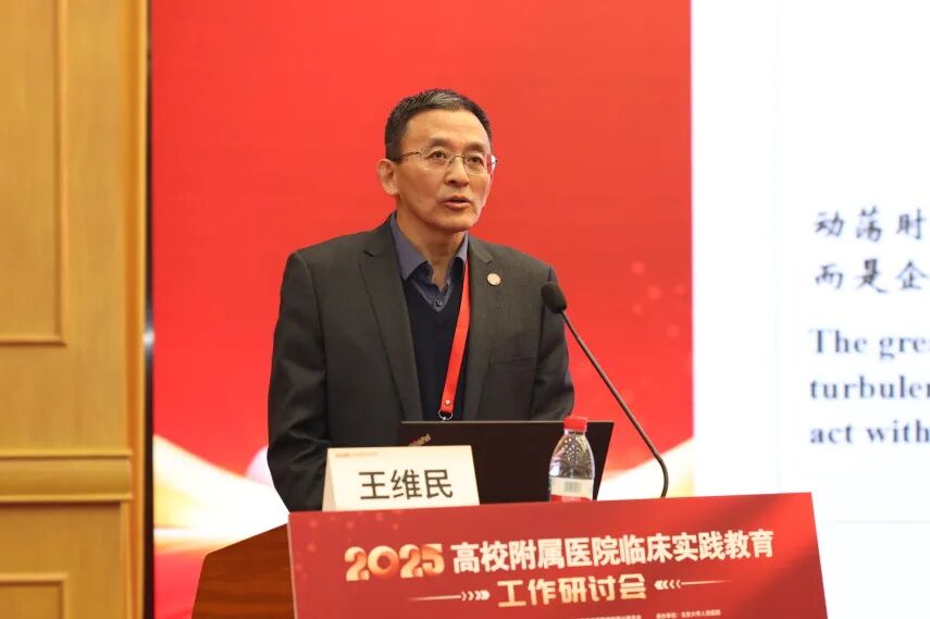 “临床实践教育是连接理论知识与临床诊疗的关键桥梁,是培育医德医风、锤炼专业技能的重要阵地,肩负着为健康中国建设输送卓越医学人才的时代使命”,北京大学人民医院党委书记、副院长王建六在致辞中表示,高校附属医院作为医教研协同发展的主阵地,应肩负起推动临床实践教育改革与创新的重大责任。